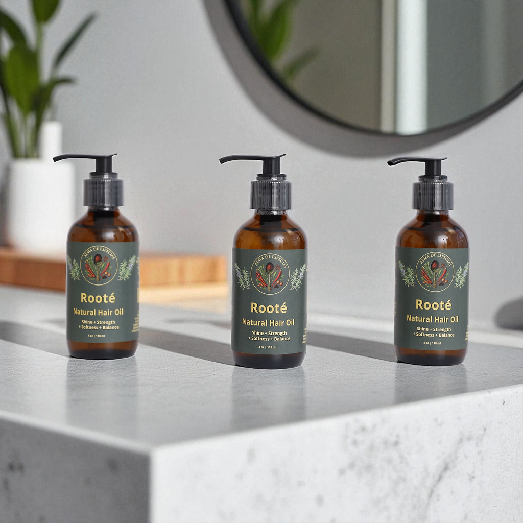 Rooté is a deeply nourishing hair treatment that strengthens from the roots, activates healthy growth, and soothes sensitive scalps. Formulated with 100% natural ingredients, it controls excess oil without drying, restores vital shine, reduces frizz, and prevents hair loss due to weakness. Its nightly application doesn't stain or run, allowing it to work while you rest. Free of silicones, artificial fragrances, and harsh chemicals, it's the honest solution your hair needs to regain its natural strength and vitality.